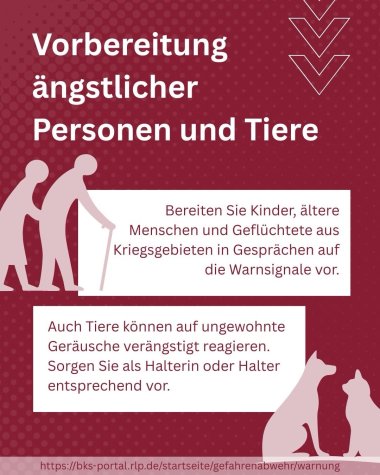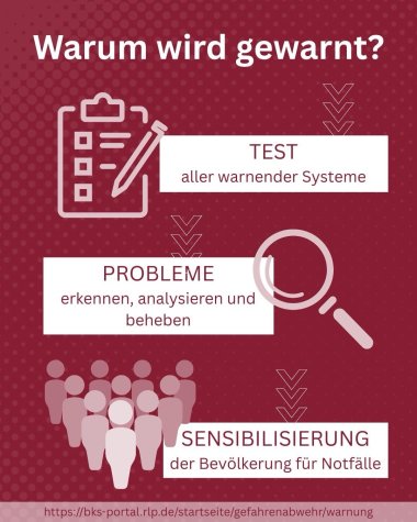 Ziel dieses Probealarms ist es, die Bevölkerung weiter zu sensibilisieren, die Warnprozesse zu optimieren und das Zusammenspiel sowie die Funktionalität der unterschiedlichen Warnkanäle zu testen.